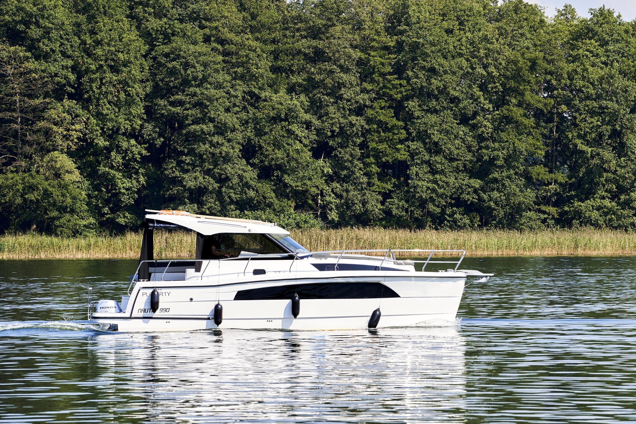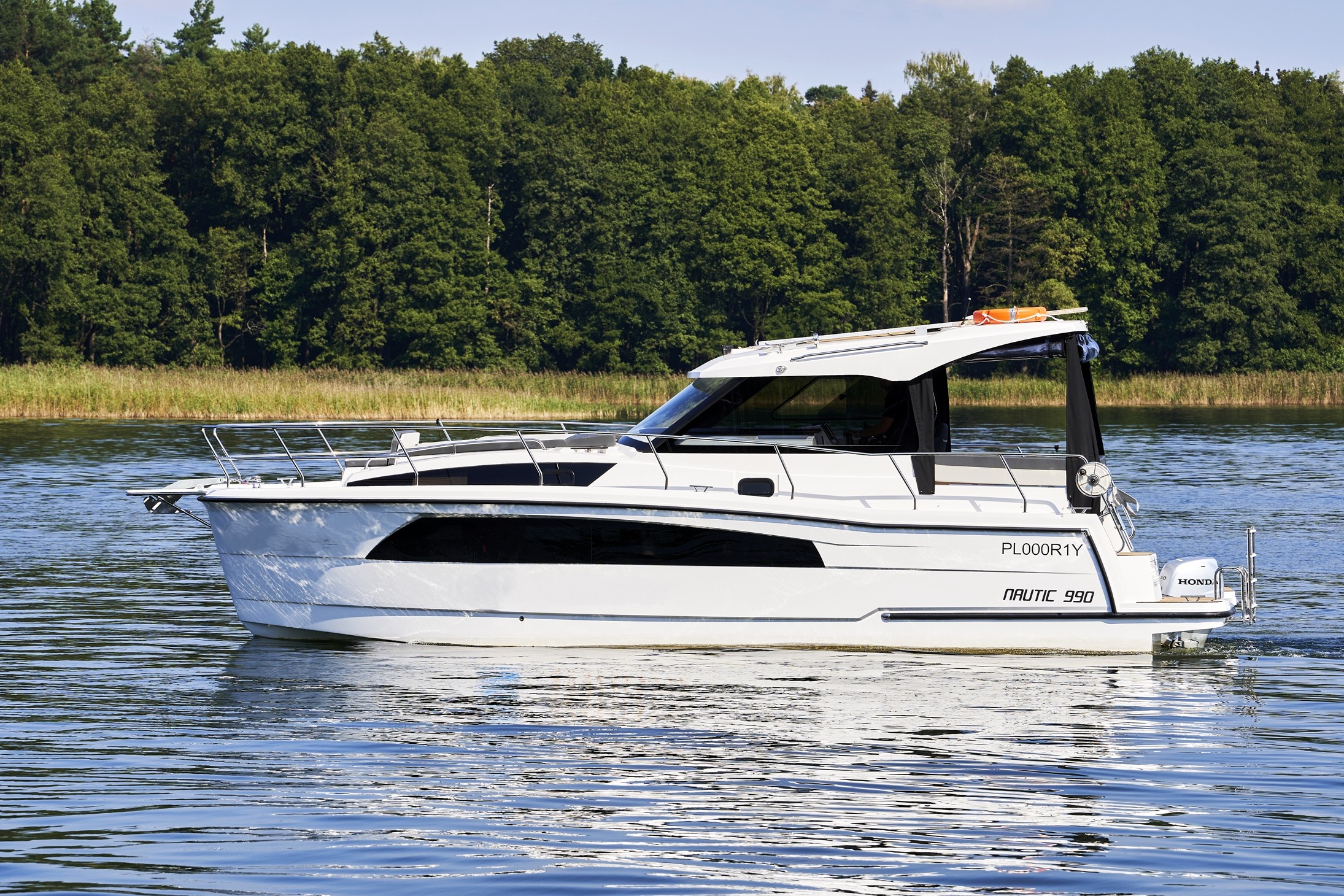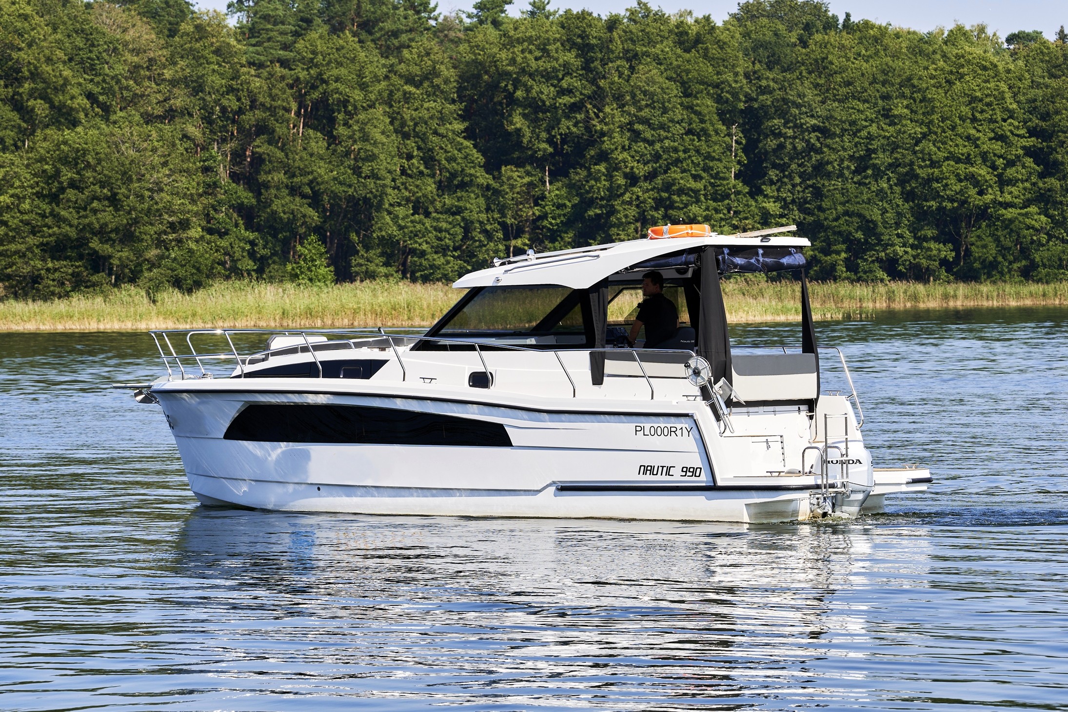 Jacht motorowy bez patentu Nautic 900 na Mazurach to jednostka dla osób, które szukają połączenia nowoczesnego wyglądu, funkcjonalności i komfortu użytkowania bez konieczności posiadania patentu.